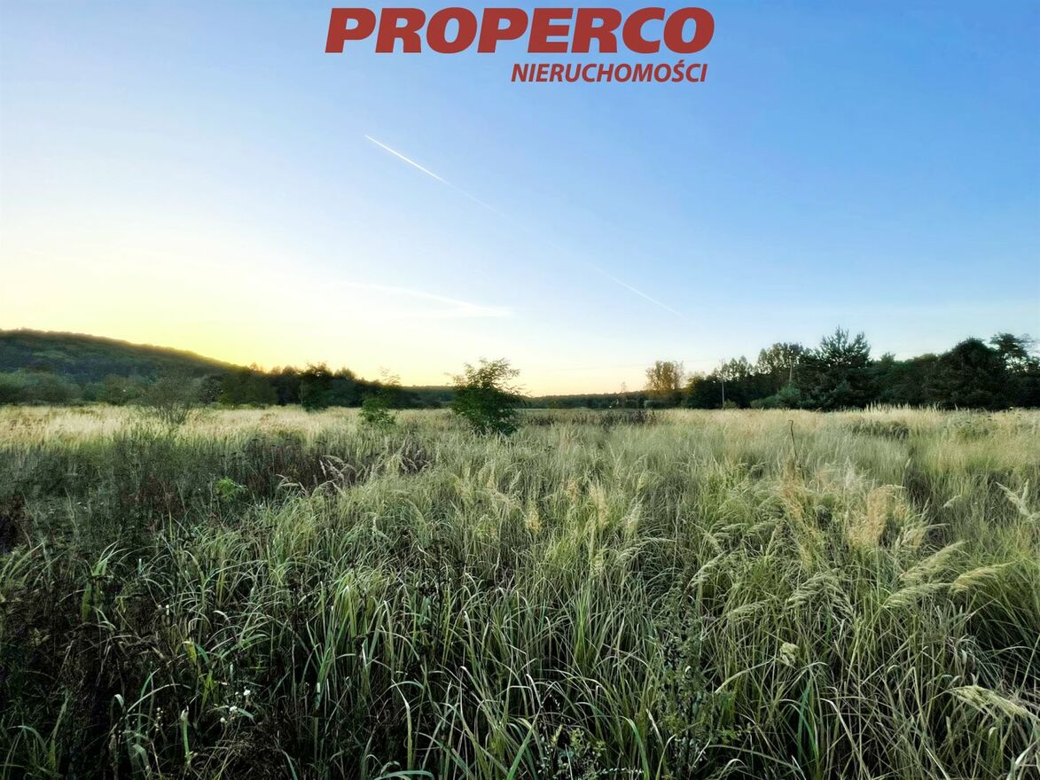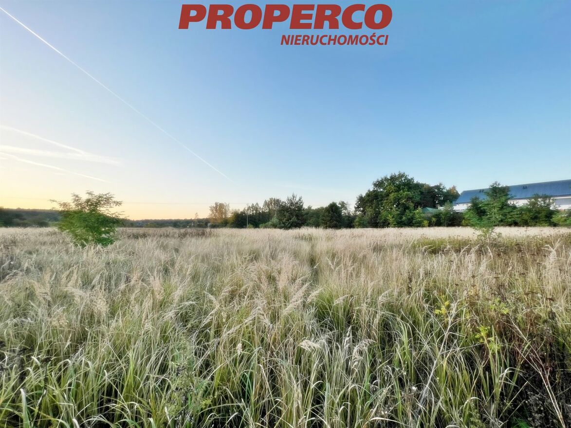 For sale, a plot of land with an area of 1173 m2 , located at Dobrzączka Street in the Chęciny municipality. Access to the property is via an unpaved road. The plot is flat and shaped like a trapezoid with approximate dimensions of 28.87 x 5.70 x 28 x 41 meters, with a frontage of 28.8 meters. According to the Local Spatial Development Plan, the plot is located in a single-family residential building area.