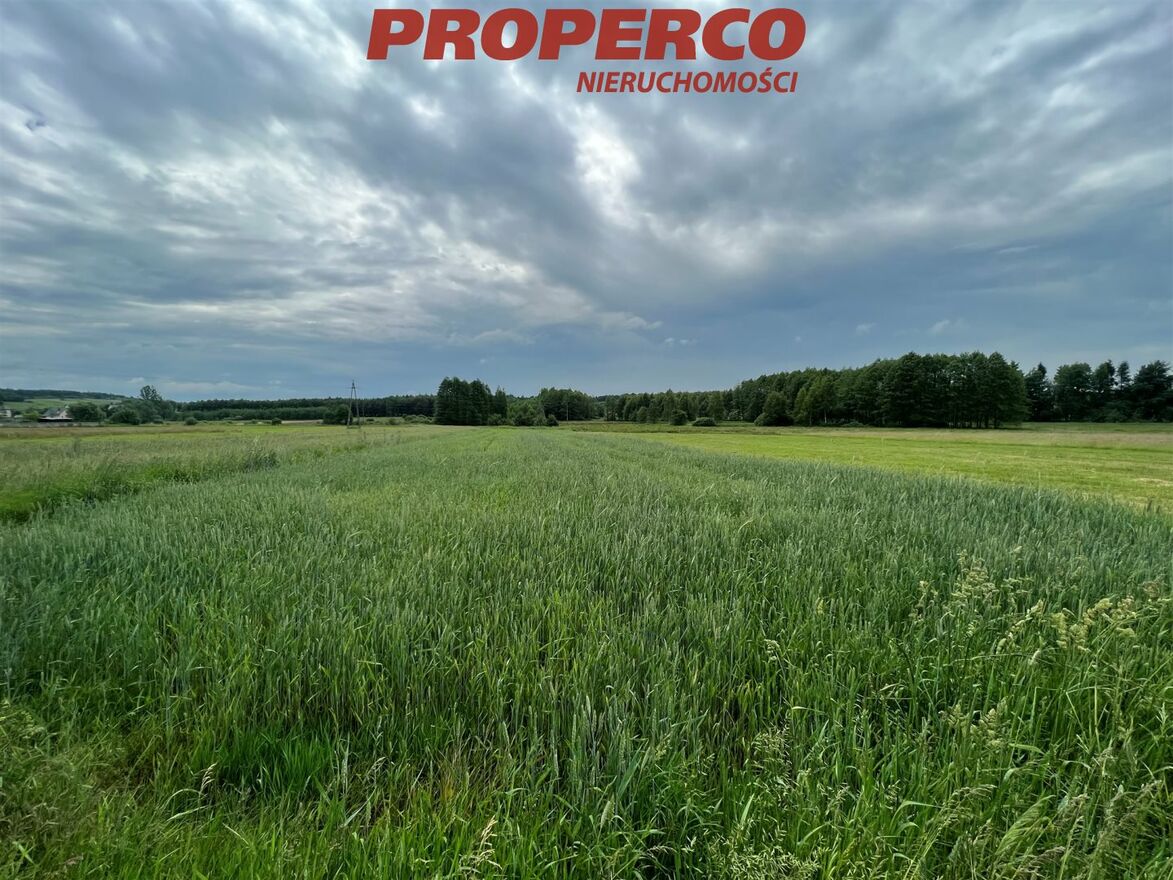 For sale: Plot of land with an area of 5940 sqm, located in the village of Łukowa, Chęciny commune. The plot is situated in the front row, with access from an asphalted municipal road and a dirt road at the back of the plot.