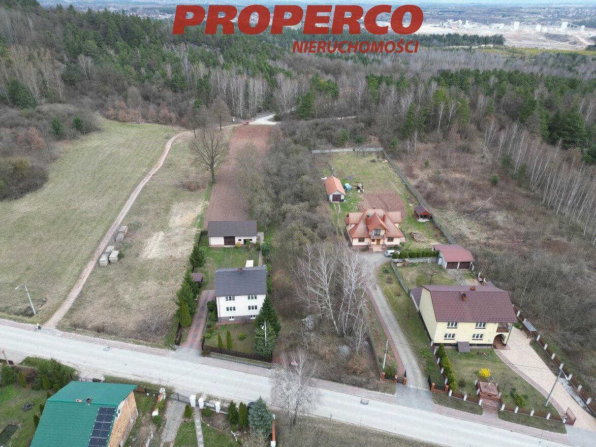Nieruchomość zlokalizowana w malowniczej, cichej i spokojnej okolicy. W pobliżu las, dużo zieleni. Bardzo dobry dojazd do Kielc - odległość od centrum Kielc to ok. 25 min jazdy samochodem. W bliskim sąsiedztwie Góra Miedzianka. W tylnej części działki obszar Natura 2000.