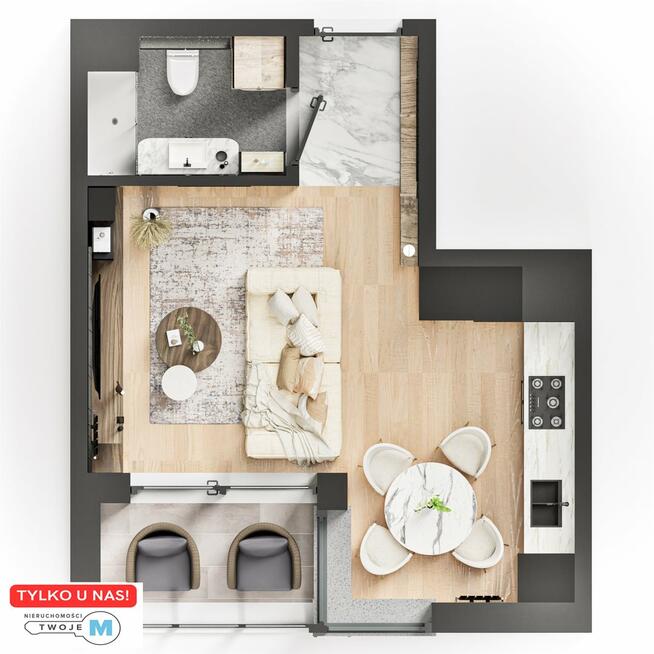 Biuro Nieruchomości TWOJE M Prezentuję na sprzedaż przytulne 1 pokojowe mieszkanie Idealne dla singla, pary ...